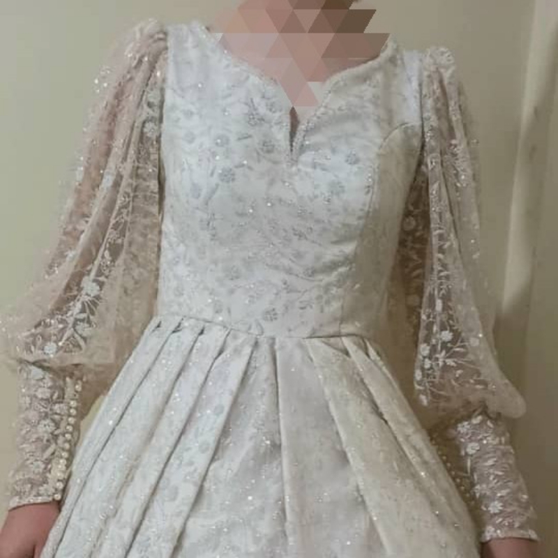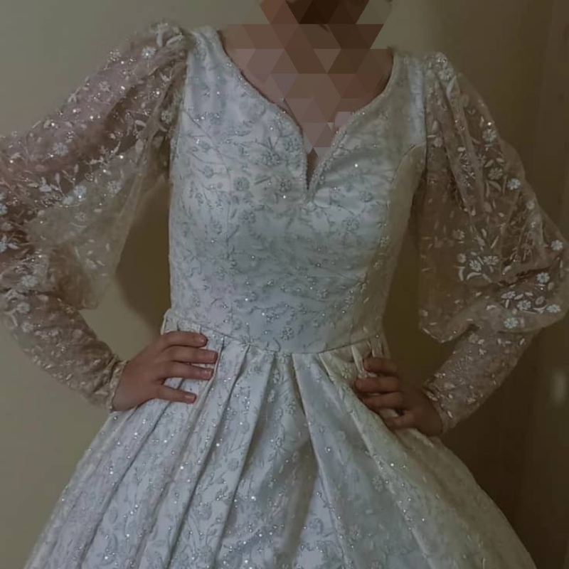 لباس عروس همراه تور منجوق دوزی شده و شنل ساتن آمریکایی